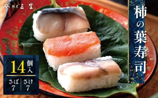 P5 柿の葉寿司 (さば7・さけ7)14個入 【割烹 三笠】 | 柿の葉すし 柿の葉ずし 寿司 すし 鯖 さば サバ 鮭 サケ 冷蔵 奈良県 大淀 老舗 和の伝統の味 ※北海道、沖縄、青森、秋田、離島地域へのお届け不可
