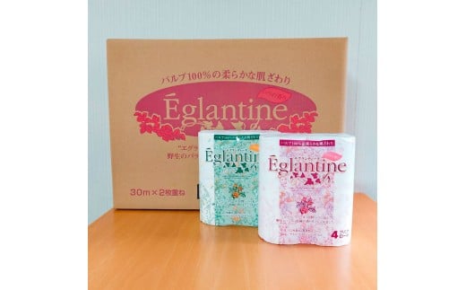 - トイレットペーパー ダブル 天然パルプ100% エグランティーヌ 60ロール入り 30m 野薔薇の香り 香り付き 野バラ プリント入り 柄入り ピンク イエロー 日用品 消耗品
