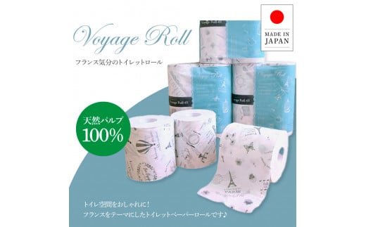 - トイレットペーパー ダブル 天然パルプ100% ボヤージュロール 30ロール入り 30m プリント入り 柄入り 無香料 フランス おしゃれ カフェ 美容室 日用品 消耗品