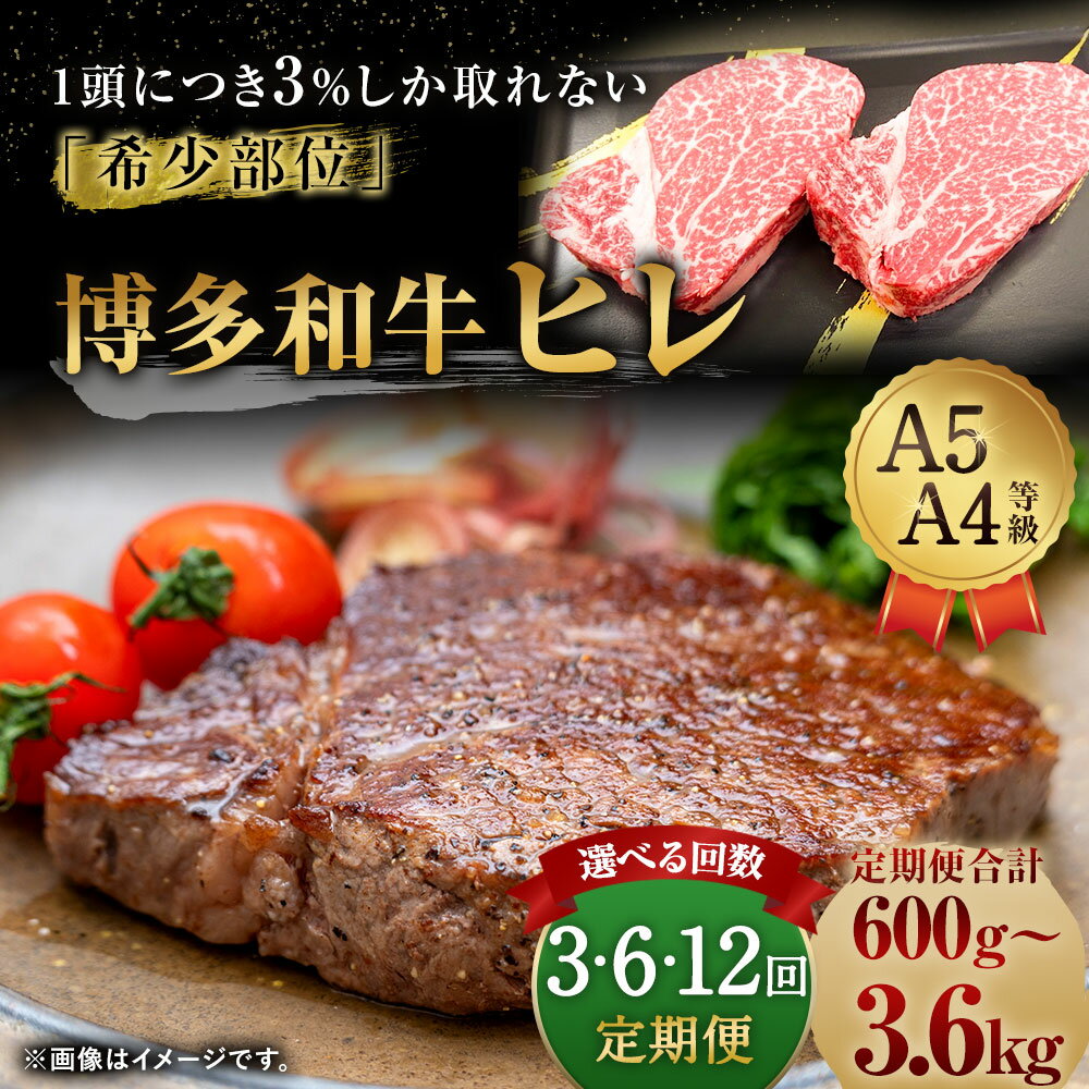 - 【ふるさと納税】【定期便】【1頭から3%の希少部位】博多和牛 ヒレ 〈選べる容量〉1回あたり 約200g(2枚入) / 約300g(3枚入) 〈選べる定期便回数〉3回 / 6回 / 12回 和牛 肉 牛 牛肉 お肉 ヒレステーキ 冷凍 国産 九州 福岡県 香春町 送料無料