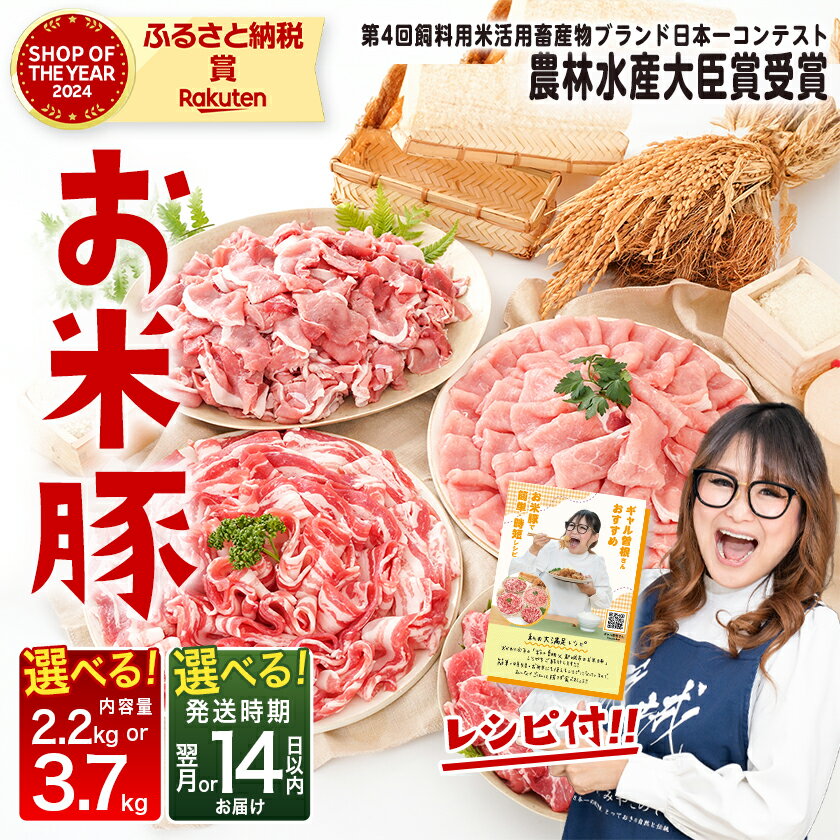 お米豚3.7kgセット - 豚肉 豚ロース/豚こま切れ(各300g×4) 豚バラ肉(300g×3) 豚肩ロース(200g×2) 計3.7キロ こだわり飼育/ブランド豚肉 小分け スライス肉 冷凍 ブランドポーク 銘柄豚 送料無料 MJ-3113【宮崎県都城市はふるさと納税二年連続日本一!!】