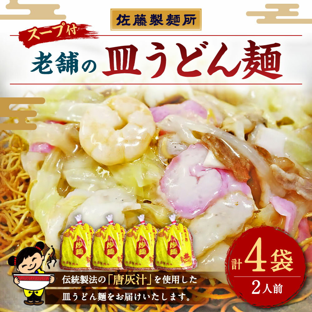 【ふるさと納税】老舗の 「長崎皿うどん麺 (2人前×4袋)」 伝統製法の 「唐灰汁」を使用 (スープ付8袋) レシピ付き 皿うどん 麺 めん 麺類 スープ 小分け 長崎名物 本場の味 簡単調理 伝統 本場 九州 長崎県 長崎市 常温 送料無料