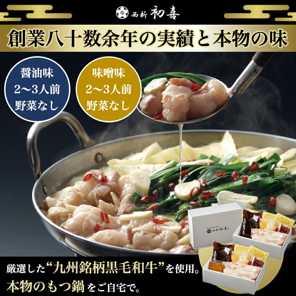 - 【ふるさと納税】黒毛和牛 もつ鍋食べ比べセット 味噌味・醤油味 2〜3人前 【野菜なし】 吉富町/西新初喜[BGAK013] 牛肉 もつ鍋 もつなべ 味噌 醤油 もつ鍋セット 人気 福岡 博多 有名 美味しい 取り寄せ ふるさと納税