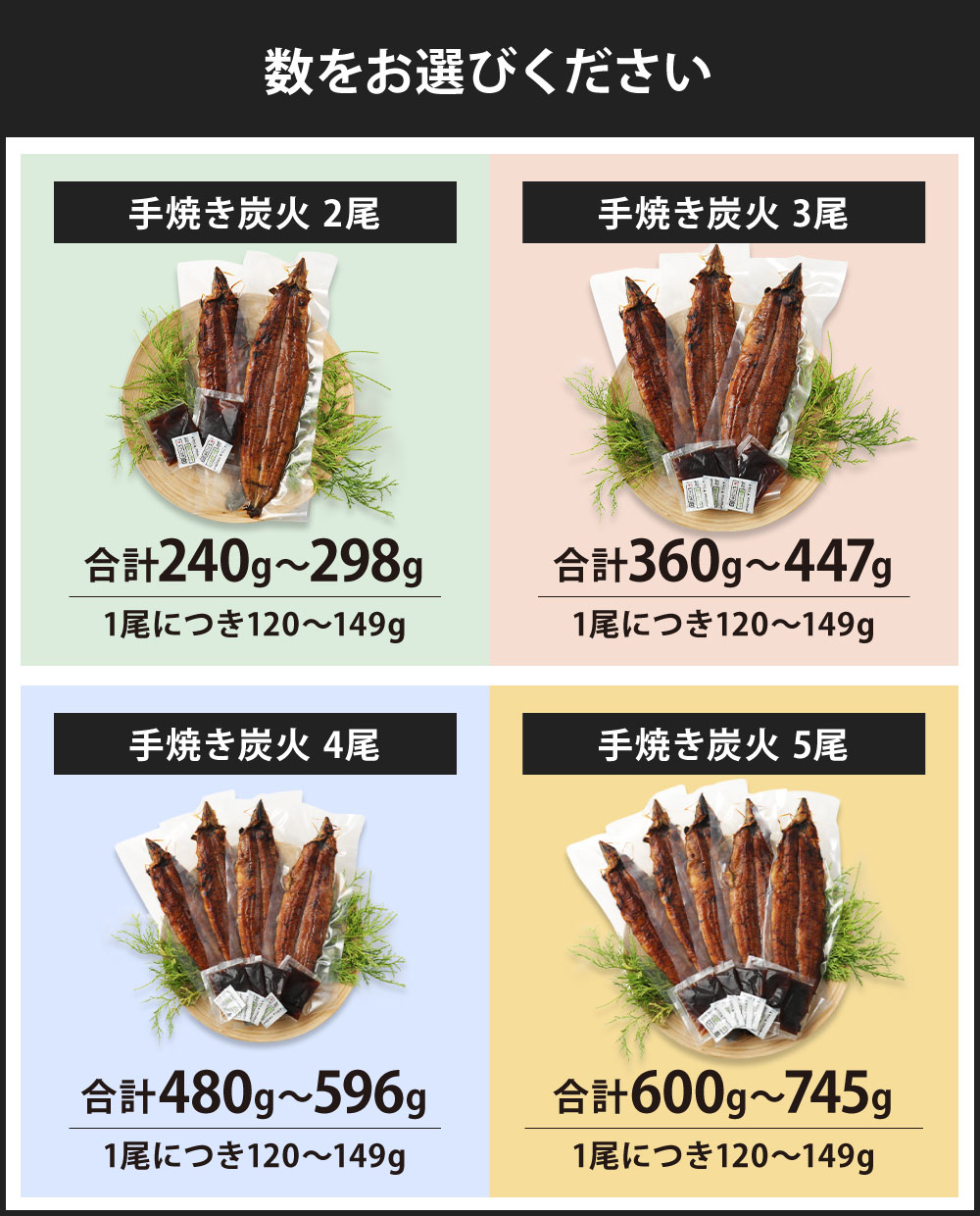 - 【ふるさと納税】選べる 九州産 手焼き炭火 うなぎ 蒲焼 (1尾あたり120〜149g) 2尾/3尾/4尾/5尾 たれ・山椒付き 鰻 蒲焼き 冷凍 国産 送料無料 鹿児島、宮崎、熊本等産うなぎ原料使用