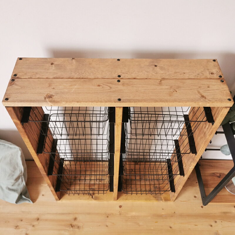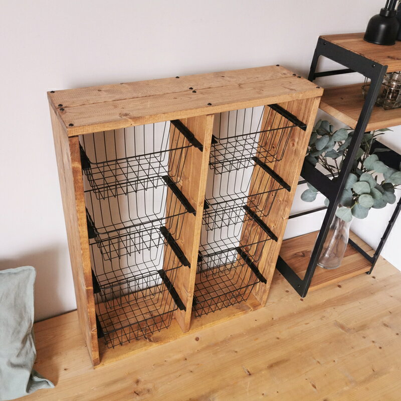 - 【ふるさと納税】 無垢材 ワイヤーバスケット シェルフ 8段 かご付 ブラウン|新星金属製作所 大阪府 守口市 玄関 リビング 子供部屋 ホルダー アンティーク ラック ニッチ カントリー雑貨 収納 天然木 アイアン シェルフ ウッド [0939r]