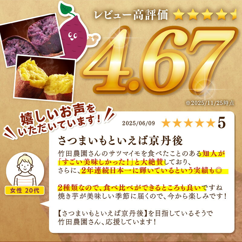 - 【ふるさと納税】受賞芋食べ比べ/高評価★4.64 TVで紹介!さつまいもオブザイヤー受賞 竹田農園 の 日本一 のさつまいも 食べ比べ 2種 土付き 選べる 品種 内容量 紅はるか ふくむらさき 3kg 5kg 10kg 京都 丹後 ふるさと納税 さつまいも サツマイモ ふるさと納税 野菜