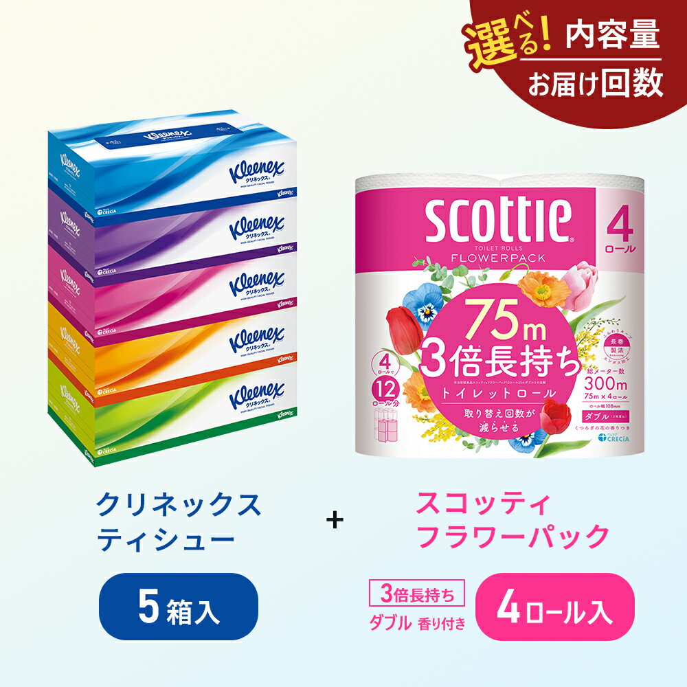 【ふるさと納税】《6ヶ月ごとに2回お届け》定期便 トイレットペーパー クリネックス ダブル 長持ち 8ロール×1P & ティッシュペーパー スコッティ10箱(5箱×2P) 秋田市オリジナル