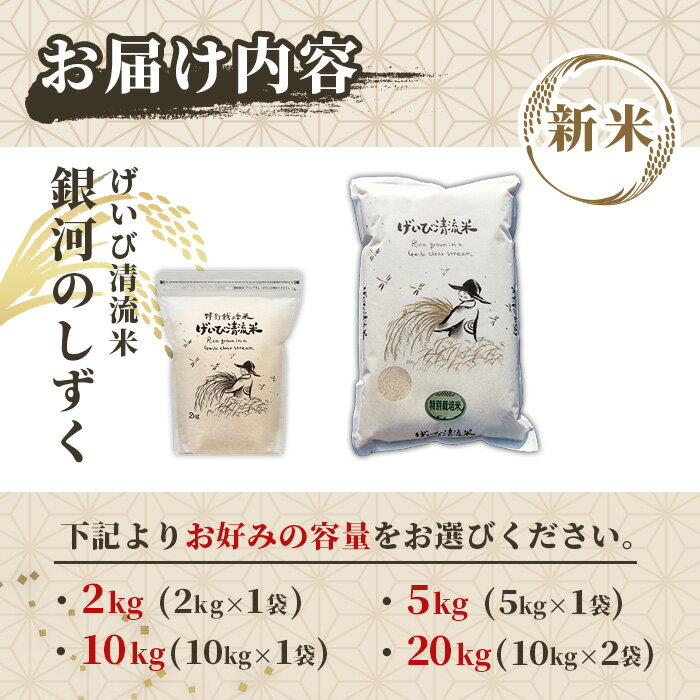 【ふるさと納税】新米 令和7年産 特別栽培米 銀河のしずく 2〜20kg 選べる容量 お米 いわて コメ 精米 ブランド米 米 ご飯 白飯 ごはん お弁当 おにぎり 袋 東北 国産 岩手県 一関市 【田舎モノ】ichinoseki00828・00830・01876・02050