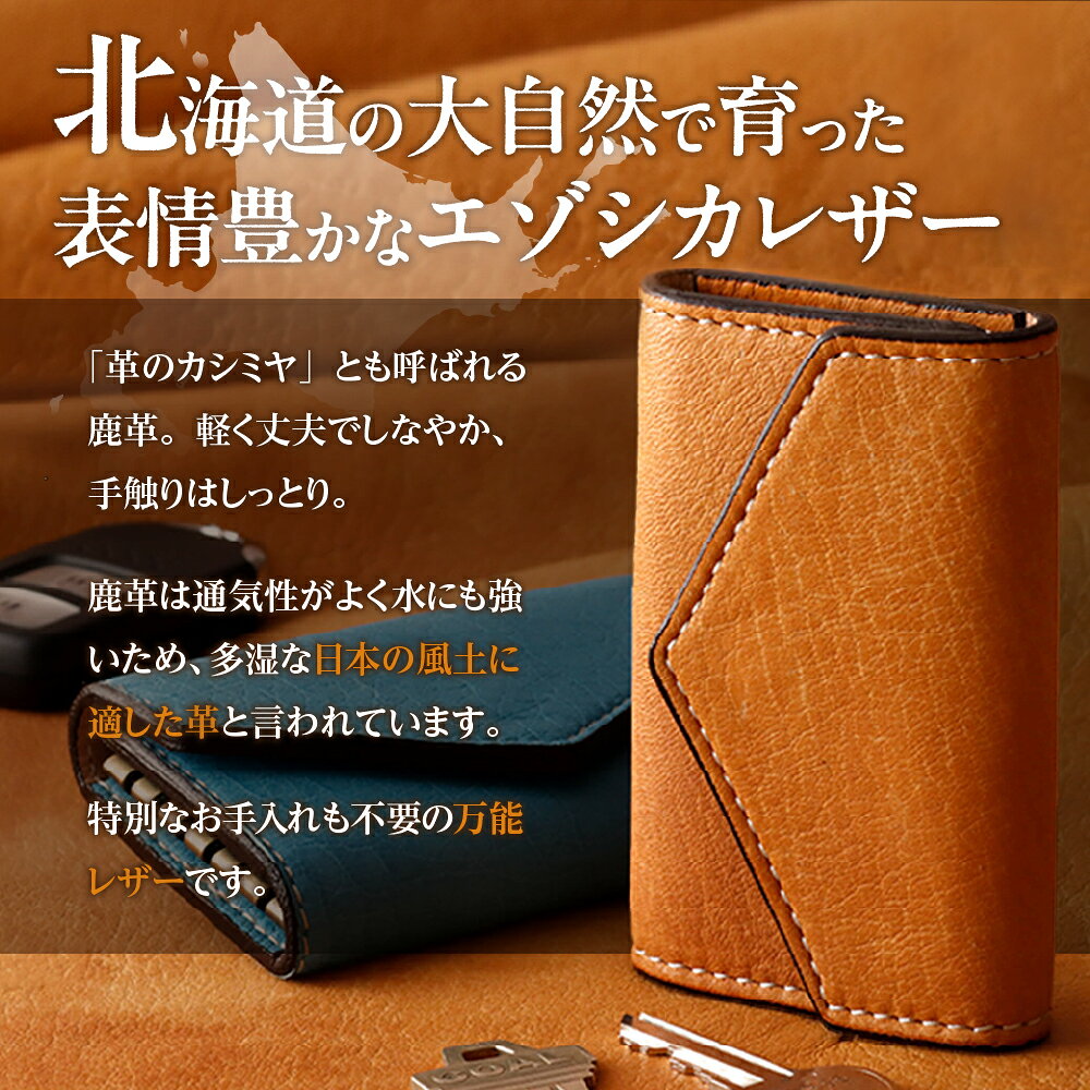 - 【ふるさと納税】 札幌革職人館 6連 キーケース 【 選べる カラー 】5色 エゾシカレザー 蝦夷鹿レザー ブラック グレー アンティークブラウン イエロー スカイブルー 黒 黄色 灰色 鍵ケース ケース 革 革小物 革製品 プレゼント 北海道 札幌市