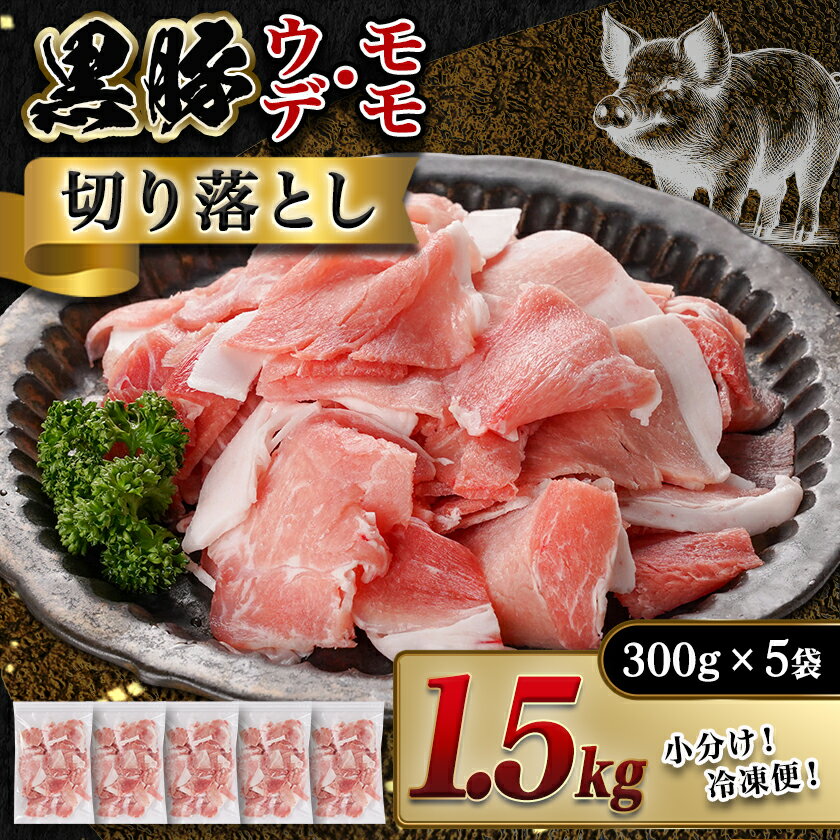 【ふるさと納税】黒豚ウデ・モモ切り落とし1.5kg - 都城産黒豚 切り落とし ウデ・モモ 300g×5袋 豚肉 黒豚 小分け ジッパー付き 冷凍 送料無料 AA-N401 【宮崎県都城市は2年連続ふるさと納税日本一!】