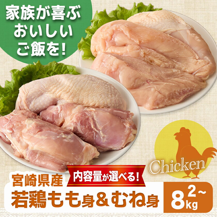 【ふるさと納税】【内容量が選べる!】宮崎県産若鶏もも身&むね身セット - 宮崎県産若鶏 真空パック もも身 むね身 選べる内容量 2kg/4kg/8kg 鶏肉 送料無料 SKU-M604 【宮崎県都城市は2年連続ふるさと納税日本一!】