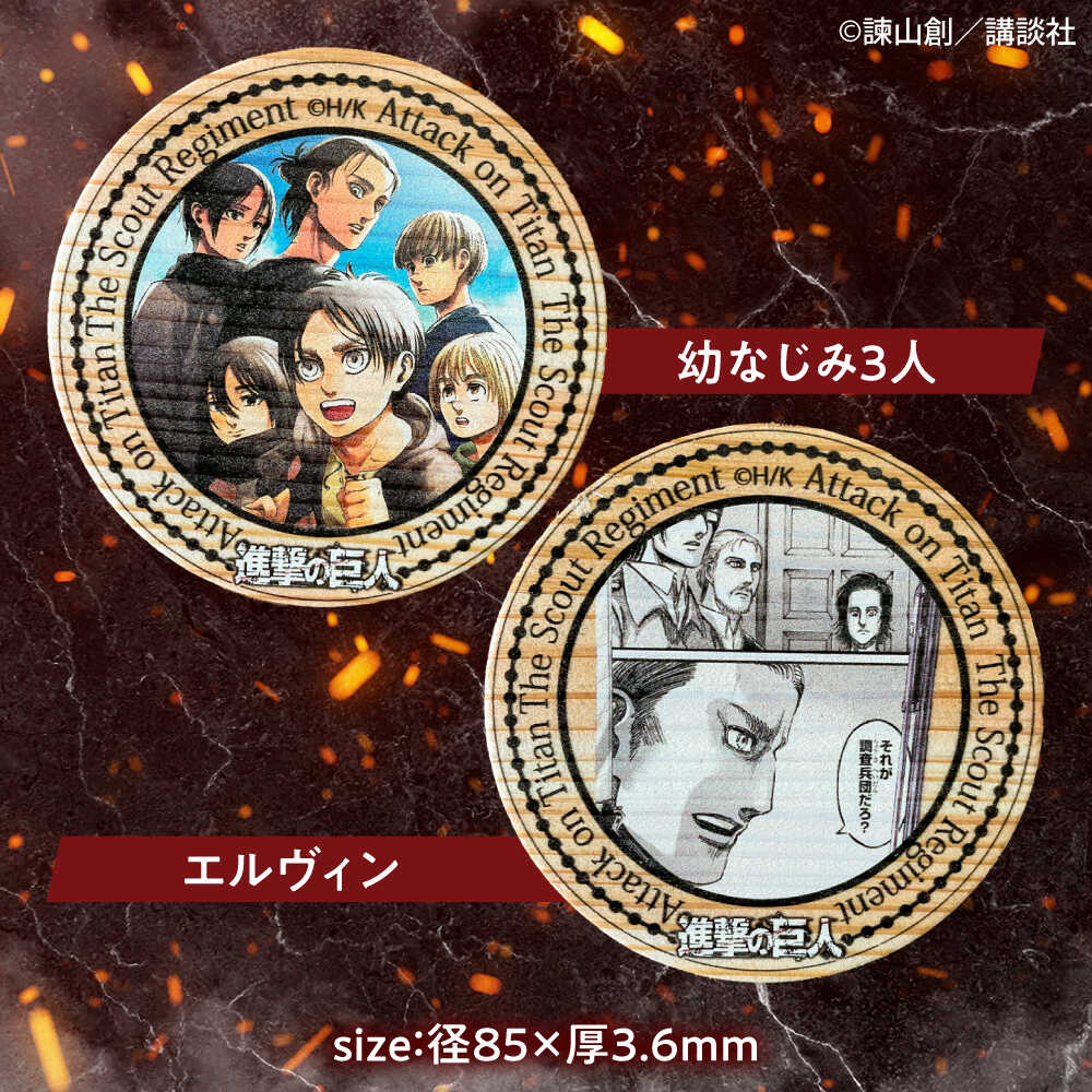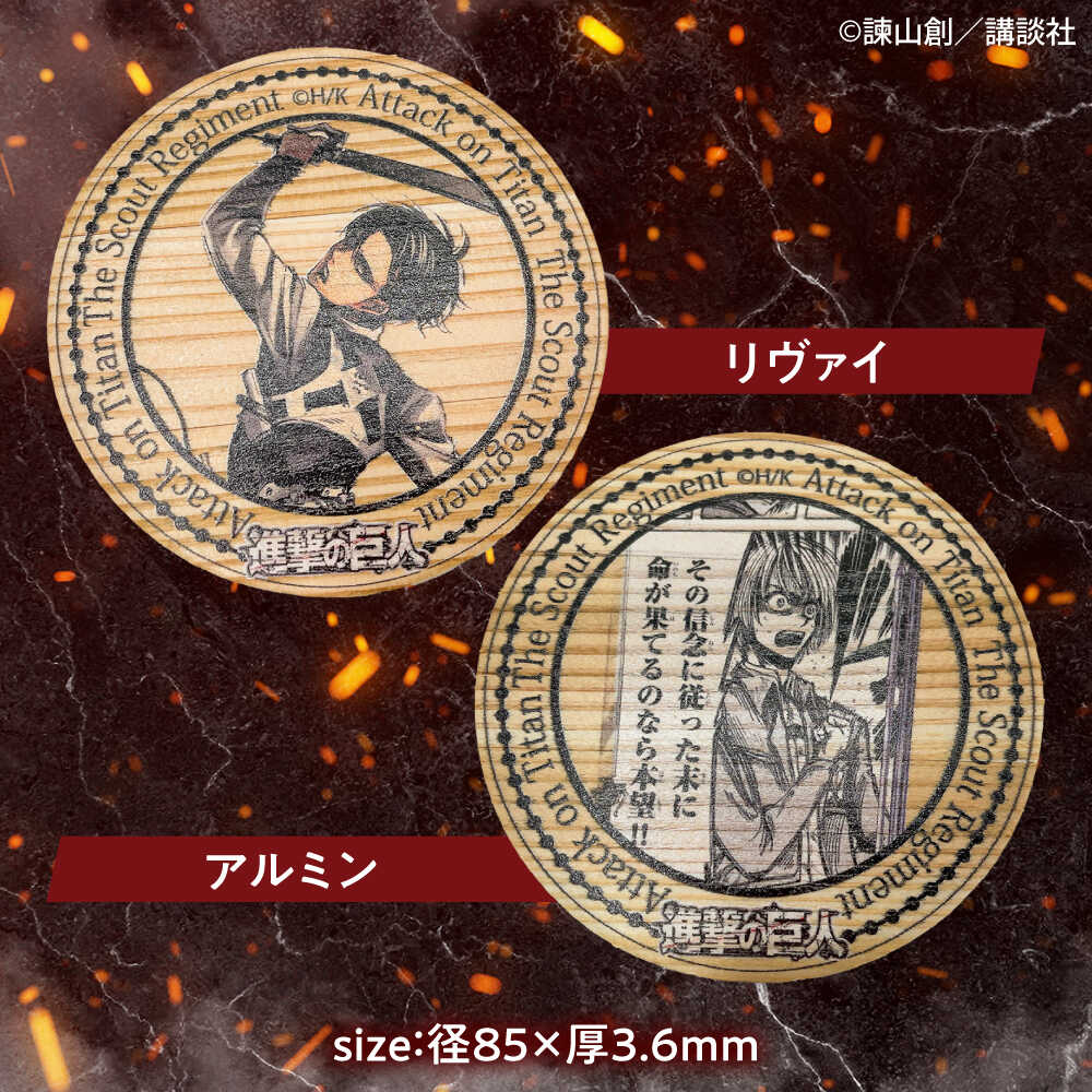 - 【ふるさと納税】「進撃の巨人」日田杉コースター丸形ver.2(6枚セット) 日田市 / 株式会社トライ・ウッド コースター キャラクター 漫画[ARCN014]