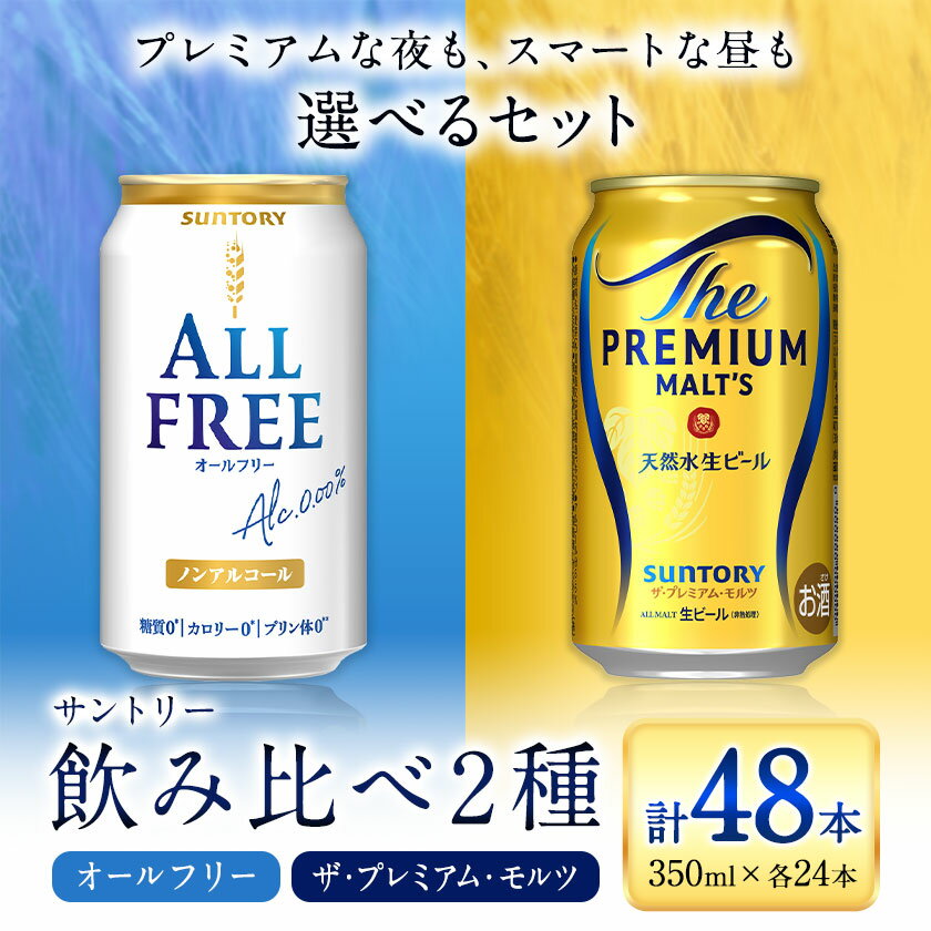 - 【ふるさと納税】“九州熊本産” 飲み比べ オールフリー プレモル 48本 350ml × 各 24本 《30日以内に出荷予定(土日祝除く)》阿蘇天然水100%仕込 プレミアムモルツ ザ・プレミアム・モルツ ビール ギフト お酒 アルコール 熊本県御船町 ザ・プレミアムモルツ 缶ビール
