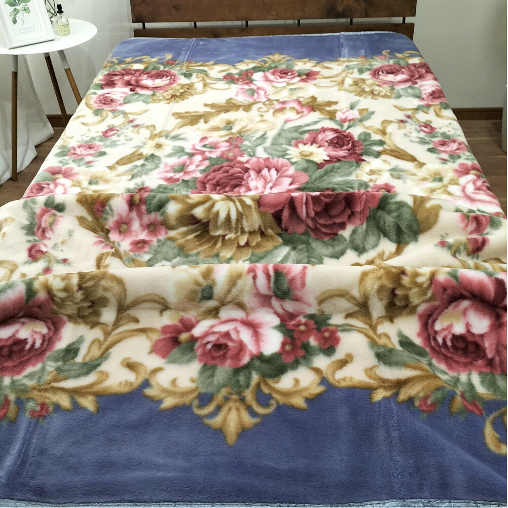 ミントン 綿毛布(毛羽部分) ブルー 約140×200cm [4413]