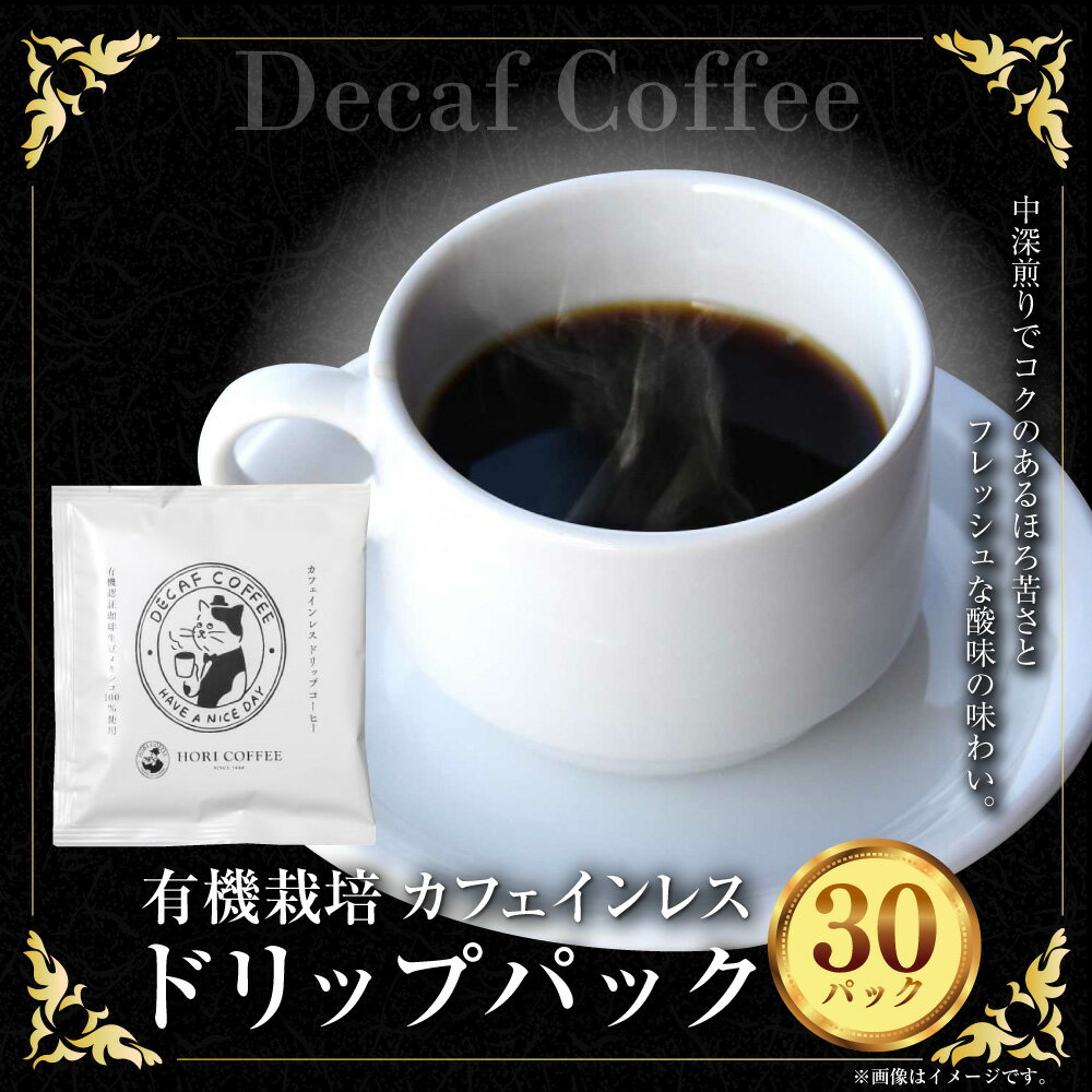 【ふるさと納税】有機栽培 カフェインレス ドリップパック 計300g(10g(1杯分)×30パック) コーヒー豆 珈琲 中深煎り 有機肥料栽培 三重県 桑名市 送料無料 116-0044