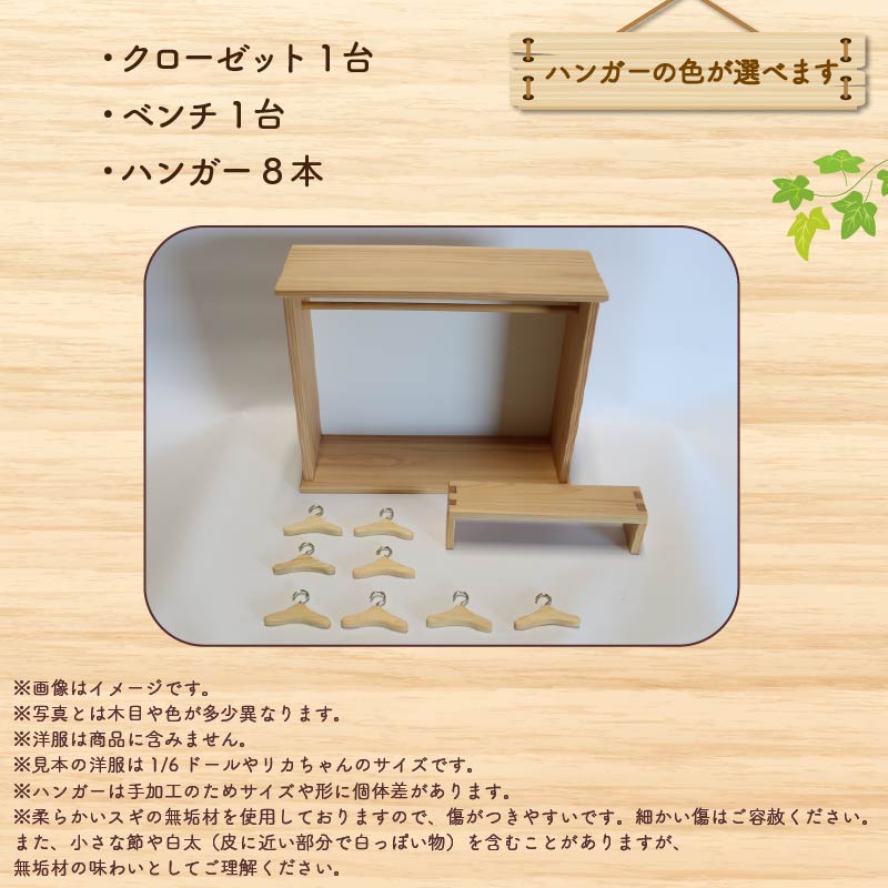 - 【ふるさと納税】 ミニチュア 家具 ドール用 クローゼット ハンガー セット ベンチ 付き 色が選べる ベージュ ブラウン ワインレッド 木製 木工品 インテリア 木 おもちゃ 人形用 静岡県 藤枝市