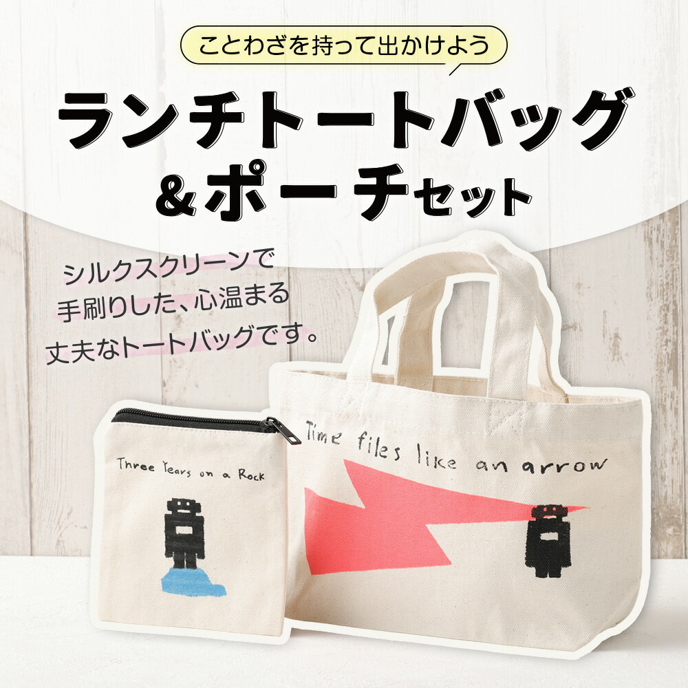 - 【ふるさと納税】ランチトートバックセット 2個 シルクスクリーンプリントトートバッグ・シルクスクリーンプリントポーチ トートバッグ ポーチ 鞄 カバン かばん 小物入れ 雑貨 ロボット ことわざ 日本製 東京都 杉並区 送料無料