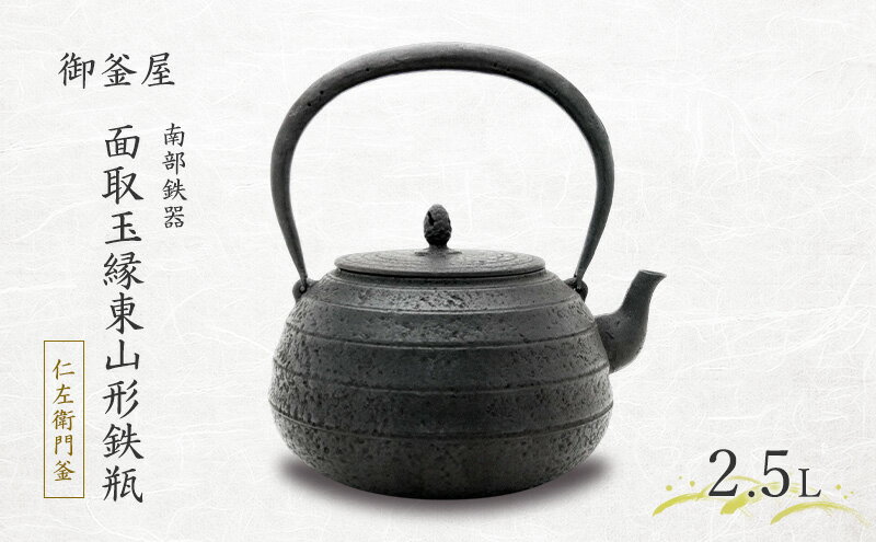 【ふるさと納税】【南部鉄器】面取玉縁東山形鉄瓶(めんとりたまぶちひがしやまがたてつびん) 仁左衛門釜 2.5L 鉄瓶 やかん 急須 キッチン用品 伝統工芸品 最高級品 プレゼント 観賞用 岩手県 盛岡市 御釜屋 砂鉄製 鉄分 健康増進 鉄分摂取 お茶 直火OK 錆びにくい