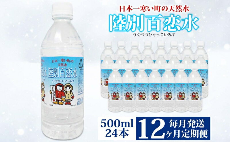 - 【ふるさと納税】定期便 12ヶ月 天然水 陸別 百恋水 500ml 24本 硬度 33mg/L 毎月発送 500 ミリリットル ミネラルウォーター