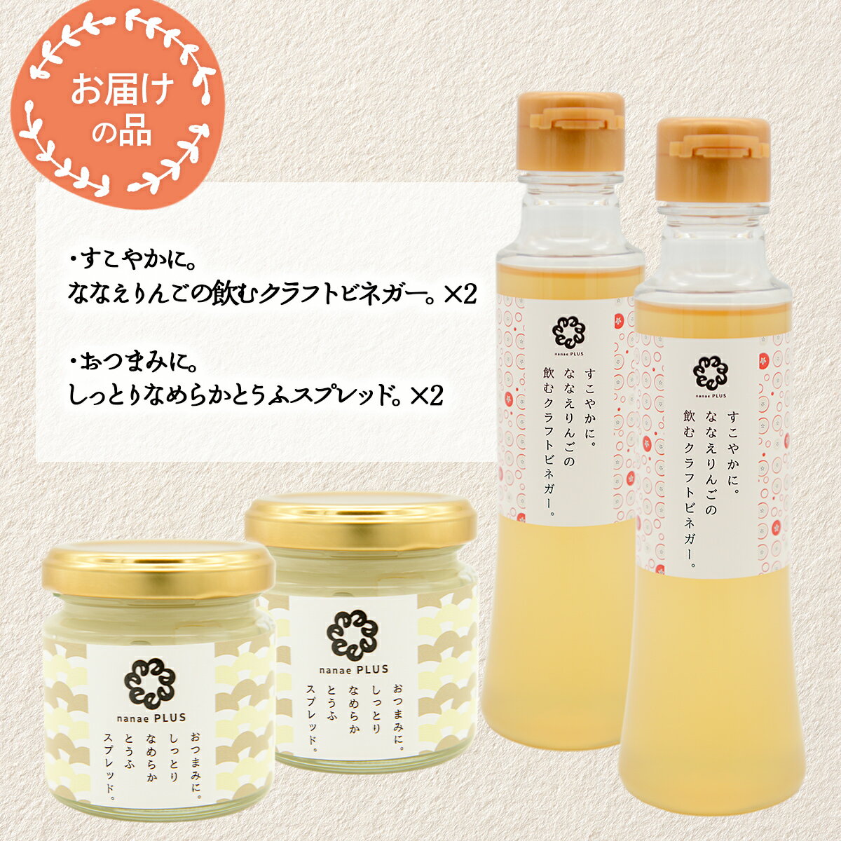 - 【ふるさと納税】【2026年1月中旬より順次発送】道の駅なないろ・ななえ nanae PLUS 商品詰め合わせ(ビネガー、スプレッド各2個セット) 【 ビネガー りんご りんご酢 とうふスプレッド スプレッド おつまみ 北海道産 北海道 七飯町 送料無料 】NABD004