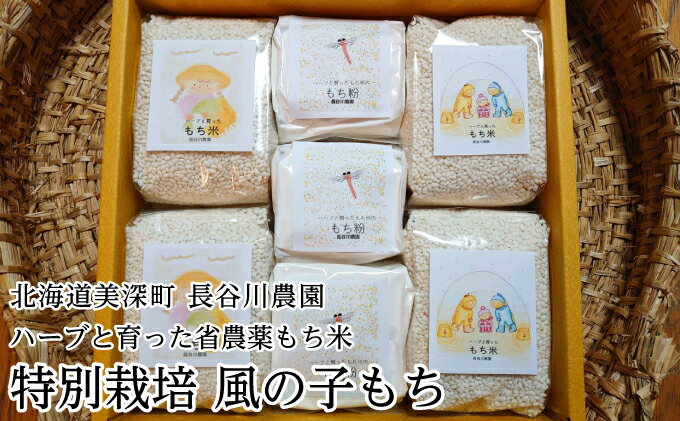 【ふるさと納税】ハーブと育った省農薬の特別栽培もち米「風の子もち」450g×4・もち粉200g×3ギフトセット【北海道美深町】長谷川農園 餅米 北海道産 お届け:2025年11月頃から発送開始