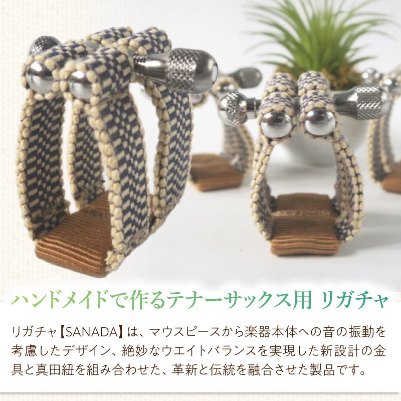 リガチャ【SANADA】 テナーサックス用(エボナイトサイズ) [195S15] リガチャ SANADA テナーサックス用 エボナイトサイズ 選べる デザイン 市松 茶 緑 緑茶 テナーサックス マウスピース チタンリング 音質向上 音質改善 耐久性 着せ替え可能 洗濯可能 洗える 紐 楽器アクセサリー 楽器パーツ 愛知県 小牧市 送料無料