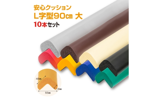 No.295-05 安心クッション L字型 90cm 大 10本セット 両面テープ付属 ライトグレー / 柔らかい 弾力性 耐摩耗性 柱 筋交い 梁 構造物 機械周りの角 突き出た危険な角 ご家庭内 工場 駐車場 安心 安全 千葉県