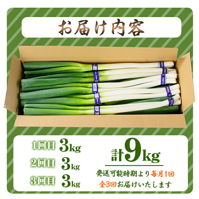 - 【ふるさと納税】<先行予約受付中!11月上旬~4月下旬発送予定>白ねぎ(3kg/定期便3回・計9kg) ねぎ ネギ 白ネギ 長ねぎ 長ネギ 旬 根付き 土付き 煮込み 炒め 生 和洋中 万能 鍋 鍋料理 BBQ バーベキュー 天ぷら てんぷら 【sm-DT004】【河岡農園】