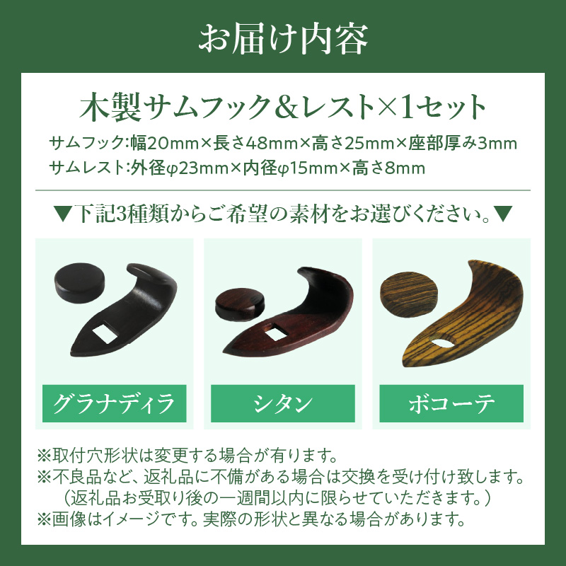 木製サムフック&サムレスト ヤナギサワ用 [195S21] 木製 サムフック サムレスト 選べる 素材 シタン グラナディラ ボコーテ 肌触り 優しい素材 幅広い分野 中間的 サウンド 黒色 硬い木 茶褐色 黄色 杢目 柔らかい木 管楽器用 愛知県 小牧市 送料無料
