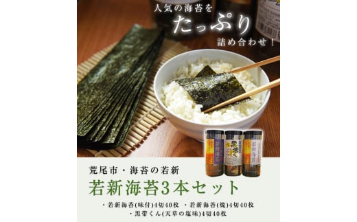 荒尾市・海苔の若新 若新海苔3本セット《若新海苔(味付)・若新海苔(焼)・黒帯くん(天草の塩味)》《30日以内に出荷予定(土日祝除く)》有明海産