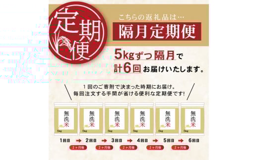 12月中旬発送開始/【隔月6回定期便】無洗米はえぬき 5kg×6回(計30kg) 農家直送『いいあん米』AG SM0035