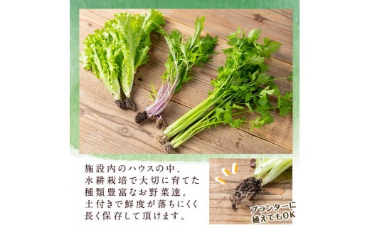 - i678-B <定期便・計6回(連続月)>ひかりのお野菜(約10束・5~6種) 野菜 やさい 葉物 旬 定期便 ほうれん草 水菜 チンゲン菜 小松菜 リーフレタス ルッコラ 水耕栽培 ミックスリーフ 山東白菜 何が届くかはお楽しみ【ひかりの郷】