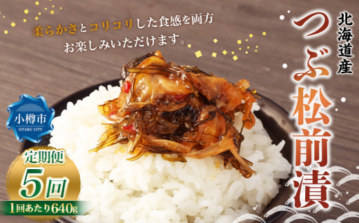 【5回定期便】 つぶ 松前漬 640g (160g×4) 合計3.2kg 5回 松前漬け つぶ貝 貝 海鮮 海の幸 定期便 北海道 小樽市 冷凍 送料無料