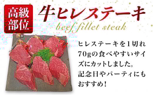 - 【高級ヒレステーキ】70g×6枚 A4ランク 博多和牛 糸島 【糸島ミートデリ工房】[ACA122] ステーキ ヒレ ヒレ肉 フィレ ヘレ 牛肉 赤身 黒毛和牛 小分け ランキング 上位 人気 おすすめ
