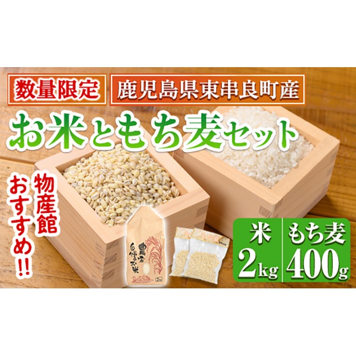 【0105935a】<数量限定>物産館おススメ!お米(2kg)もち麦(計400g・200g×2袋)セット 鹿児島県産 ごはん 白米 精米 米 もちむぎ もち麦 もち麦ごはん 真空パック 常温 常温保存 【東串良物産館ルピノンの里】