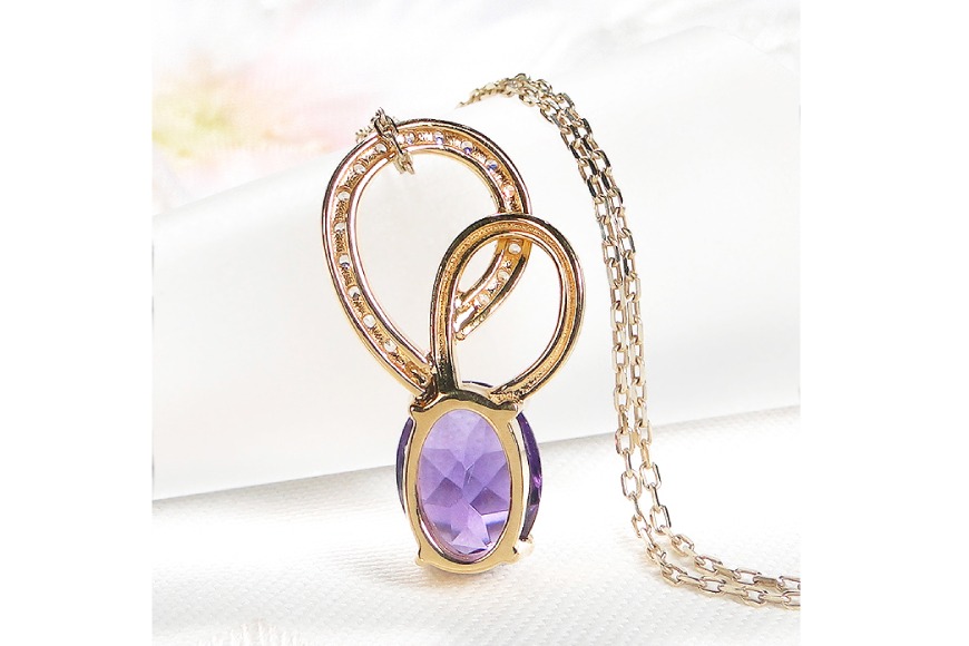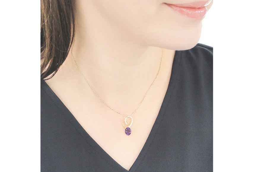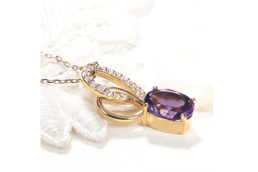 - ペンダント ネックレス K18YG イエローゴールド 0.18ct ダイヤモンド アメジスト 大粒 オーバル 誕生石 華やか ハート 大ぶり 【f274-am-k18yg】 [株式会社オーダーメイドジュエリーメイ 山梨県 韮崎市 20745061]