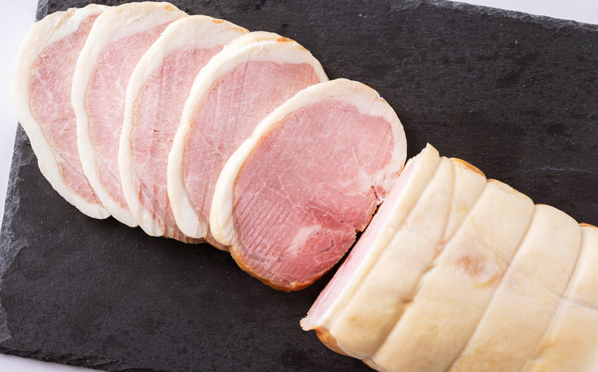 - 北海道産 ひだか ホエー豚 幸王 特製布巻 プレミアム ロースハム 750g