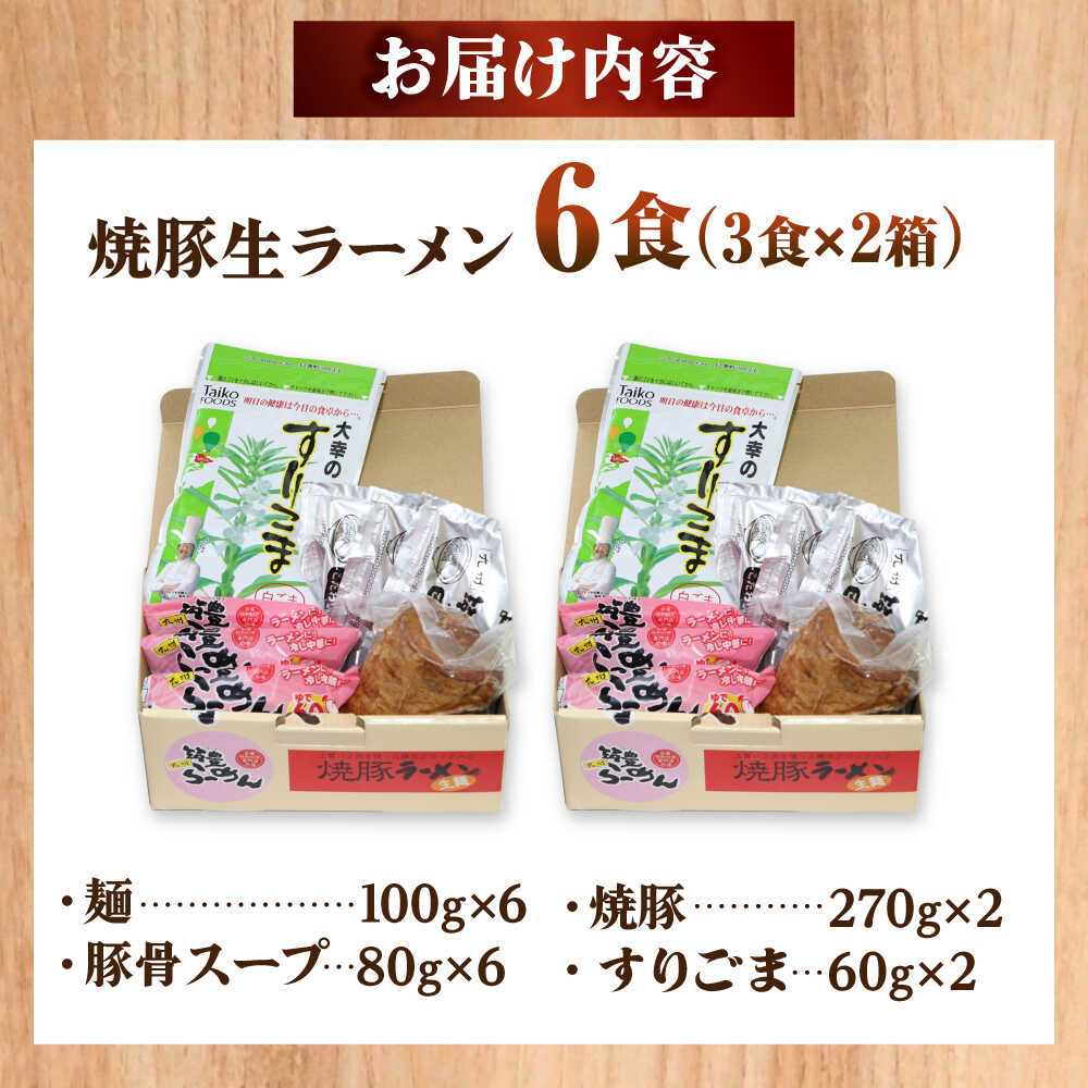 【ふるさと納税】焼豚 生ラーメン 6食(3食×2箱) 吉富町/ワイエスフード株式会社[BGBP005]
