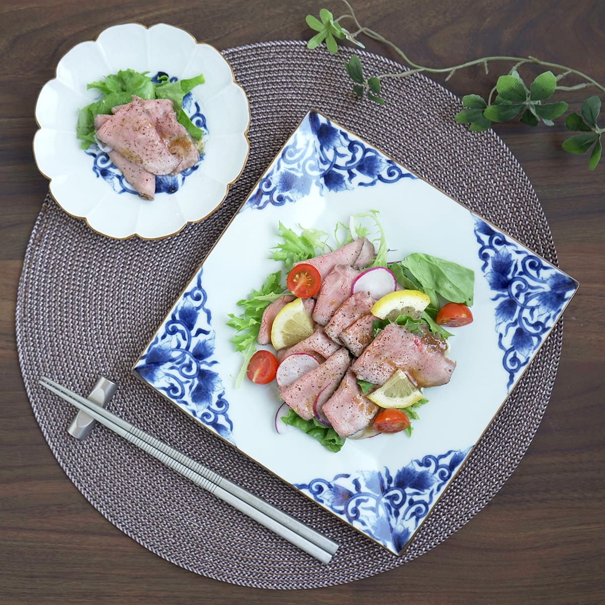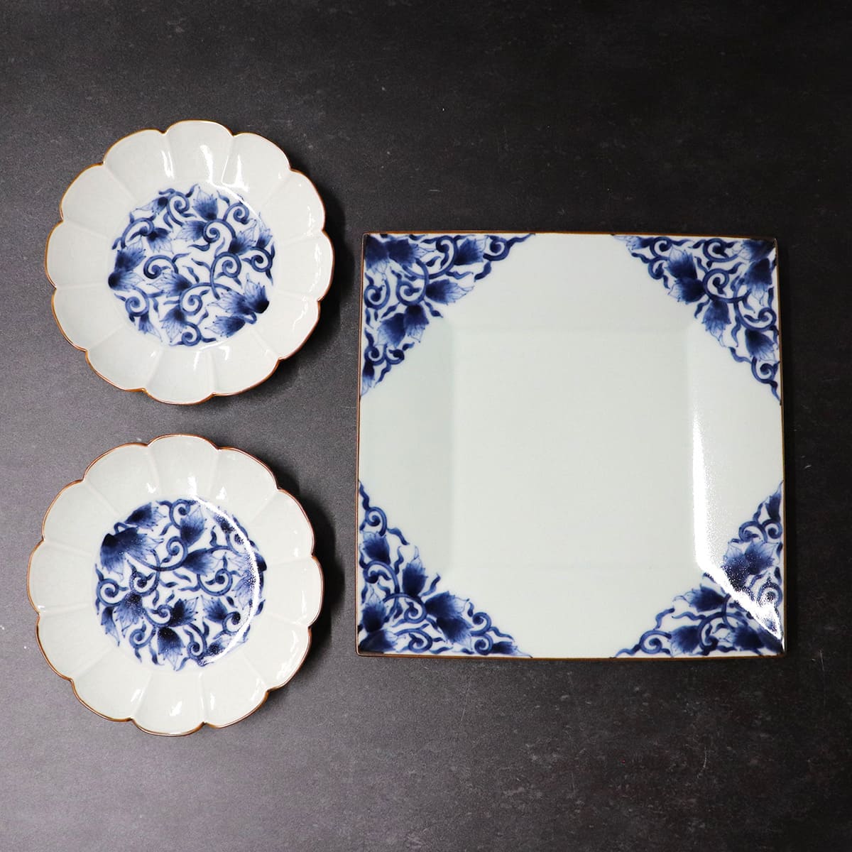 - 【ふるさと納税】有田焼 古染唐草 正角プレート ・ 花型皿 3点セット【丸兄商社】食器 器 うつわ 陶磁器 和食器 食器セット セット 3枚 皿 小皿 取皿 角皿 盛皿 メイン皿 プレート ワンプレート 染付 ブルーホワイト 上品 A45-361