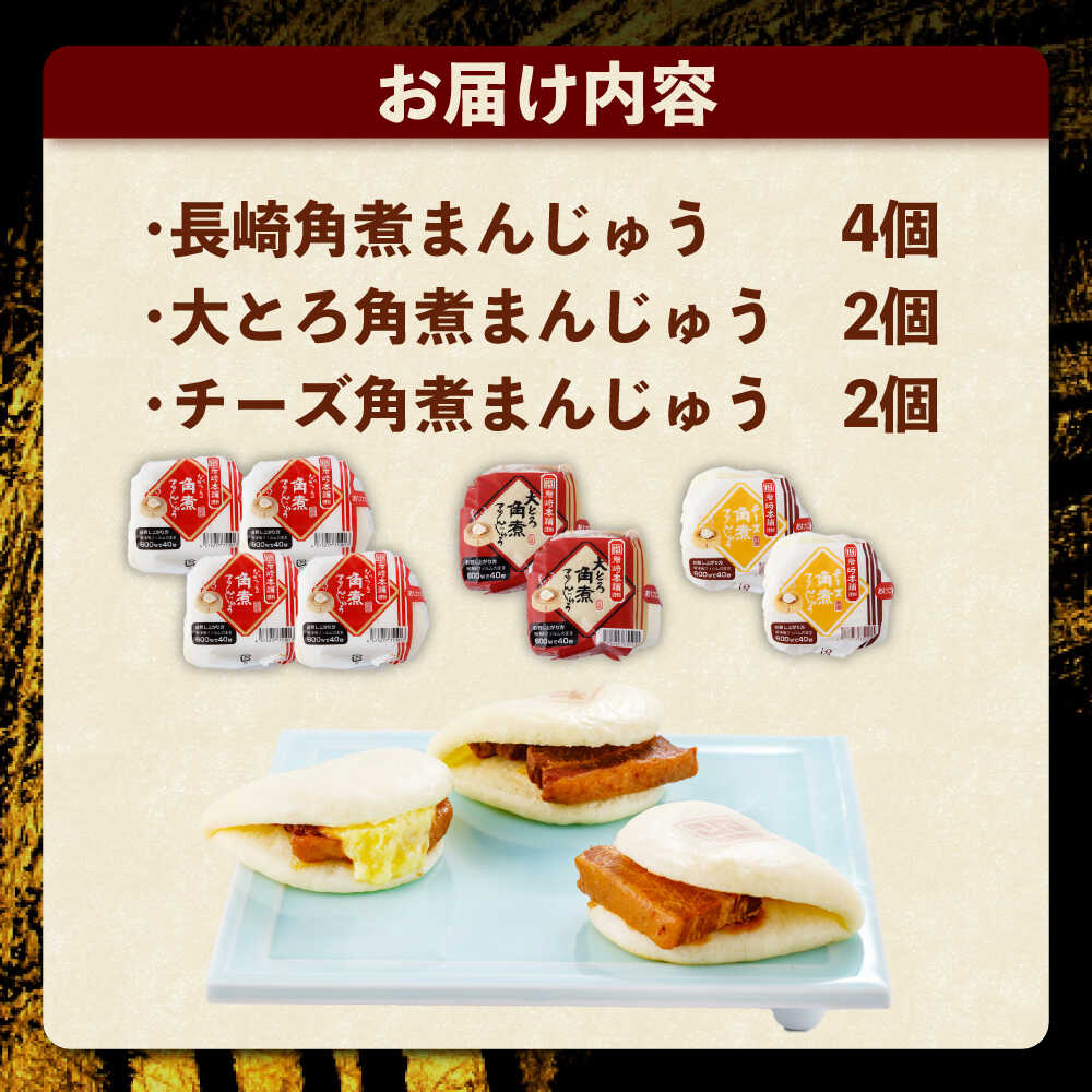 【ふるさと納税】角煮まんじゅう3種食べ比べ 計8個セット(角煮まん・大トロ角煮まん・チーズ角煮まん)【株式会社岩崎食品】[OCT033]