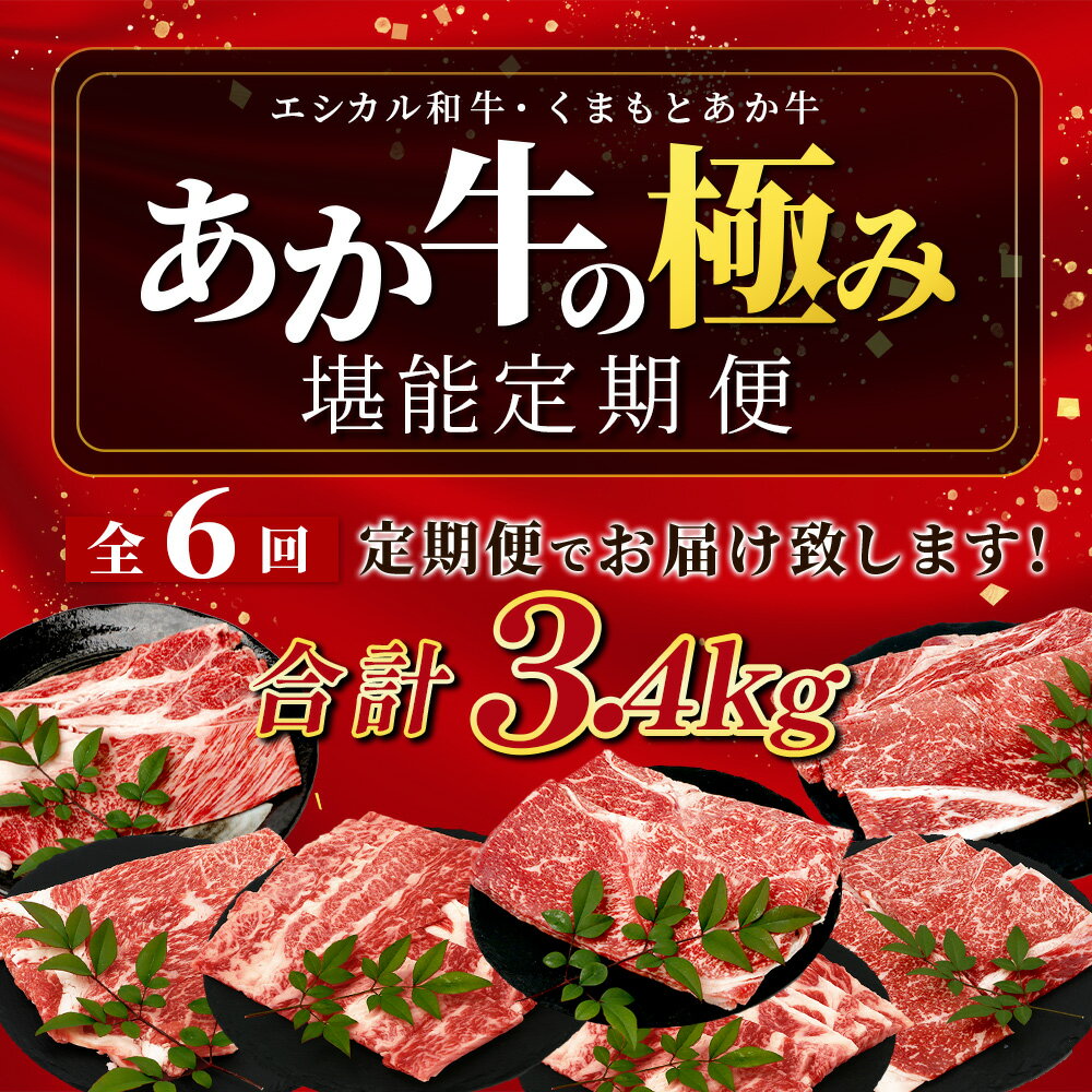 【ふるさと納税】《定期便6回》エシカル和牛・くまもとあか牛《あか牛の極み 堪能》 定期便 (合計 3.4kg) 肩ロース バラ モモ カタ 焼肉 すき焼き しゃぶしゃぶ 熊本 あか牛 牛肉 小分け 和牛 定期便 SDGs ブランド 牛 熊本県産 熊本 冷凍 九州産 国産 送料無料