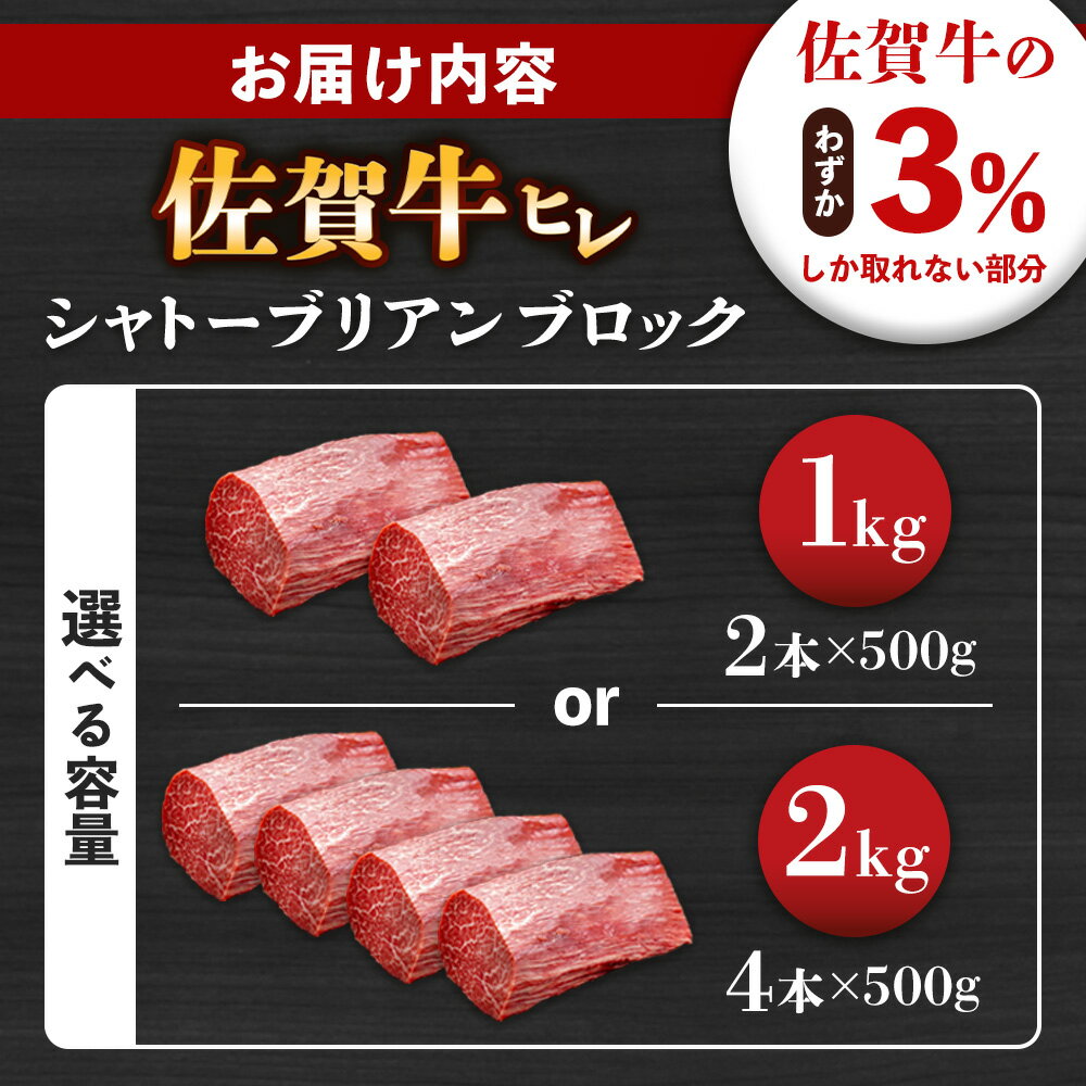 - 【ふるさと納税】【年末配送可能】佐賀牛 ヒレシャトーブリアンブロック【内容量が選べる 1kg 2kg 2本 4本 幻のお肉 希少価値 高級佐賀牛 ヒレ肉 中央部分 ダイヤモンドカット とろける口当たり ローストビーフ ステーキ 焼肉 最高級部位】K030P024