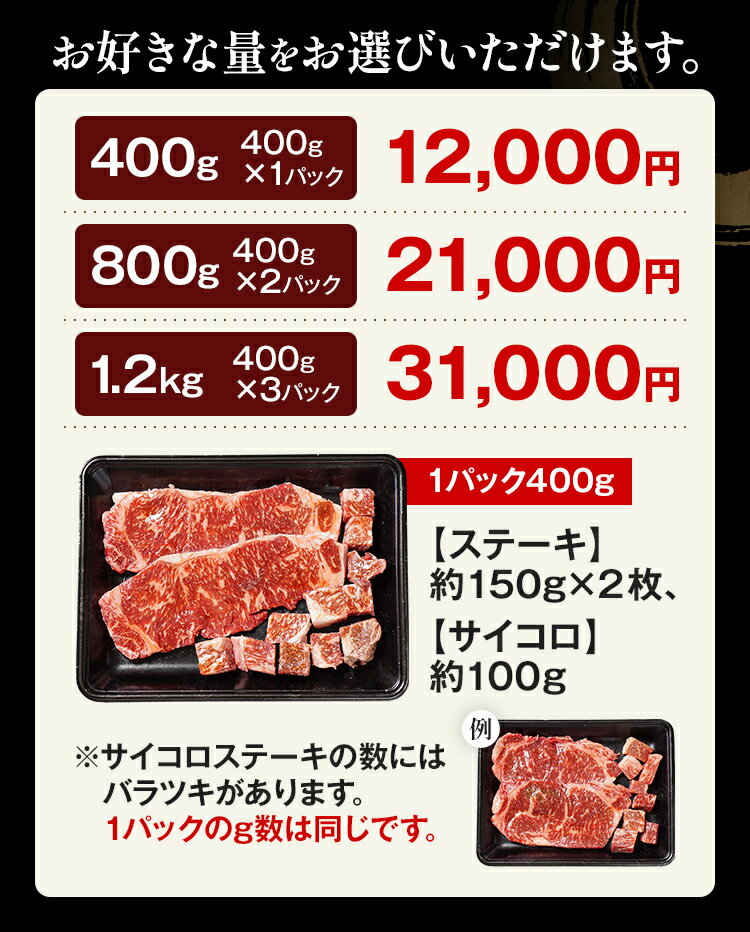- 【ふるさと納税】【レビューキャンペーン】九州産黒毛和牛 サーロインステーキ 旨味仕立て 選べる 400g 800g 1.2kg 国産 黒毛和牛 和牛 肉 サーロイン ステーキ サイコロ 冷凍 味付け肉 福岡 九州 グルメ CP2509HM