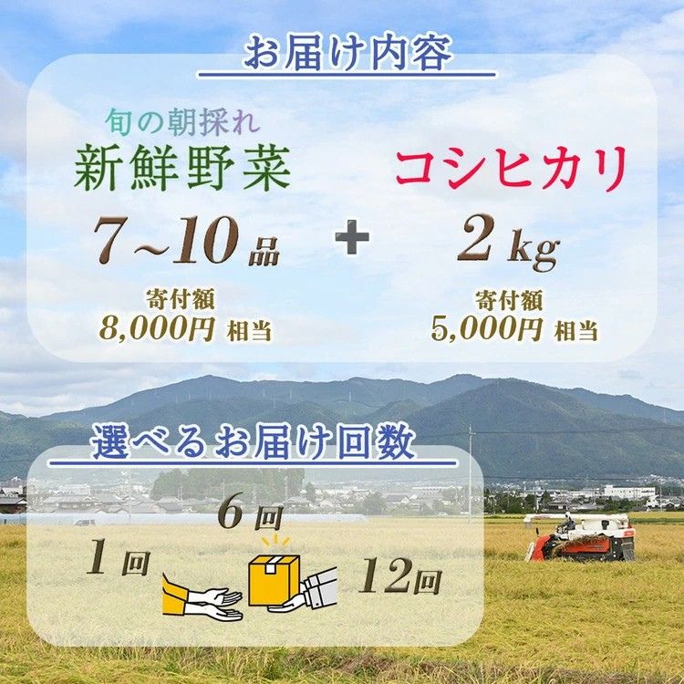 - 【ふるさと納税】米 定期便 2kg(コシヒカリ) 旬の野菜7~10品セット 1回 6回 12回 京都 京都丹波/亀岡産 季節の野菜 詰め合わせ≪産地直送 直売所 令和7年産 6ヶ月 12ヶ月 ふるさと納税野菜 京野菜 訳あり 生活応援 新米≫※配送不可地域あり