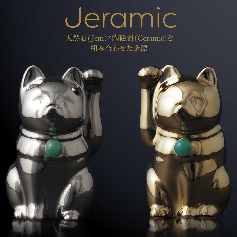 【ふるさと納税】【瀬戸焼】<招き猫>Jeramic 2体セット ゴールド&プラチナ アベンチュリン5月 【m.m.d.】 / インテリア ネコ 風水 誕生石[BBAC004]