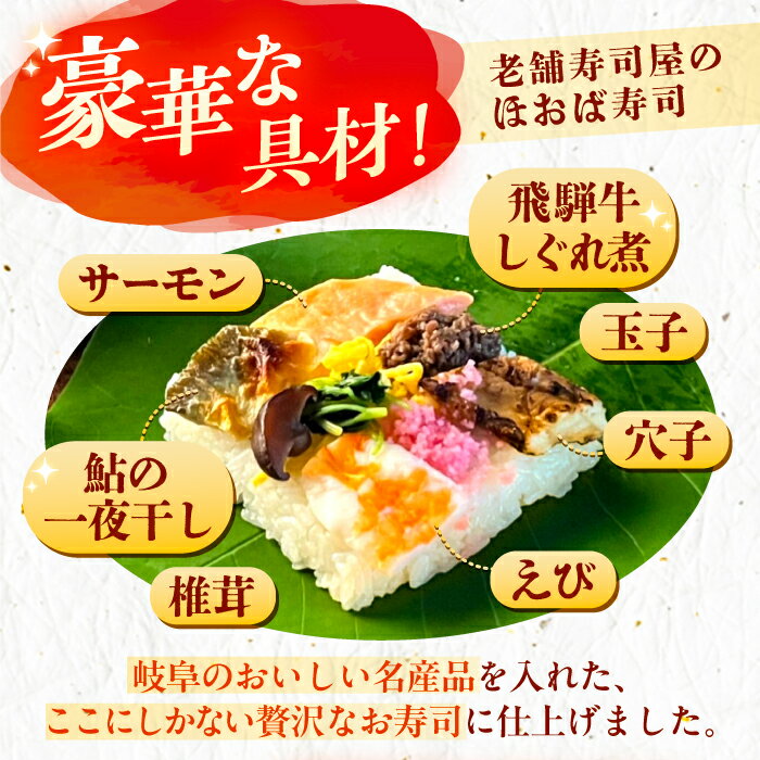 【ふるさと納税】華やか姫街道の朴葉寿司(飛騨牛しぐれ煮と鮎入り) 6個入り / すし スシ 寿し 寿司 朴葉寿司 飛騨牛 鮎 伝統 郷土料理 岐阜 葉包み 寿司 酢飯 山菜 食文化 特産品 手作り 家庭料理 和食 お取り寄せ /恵那市/中山道大井宿 寿司幸[AUBQ001]
