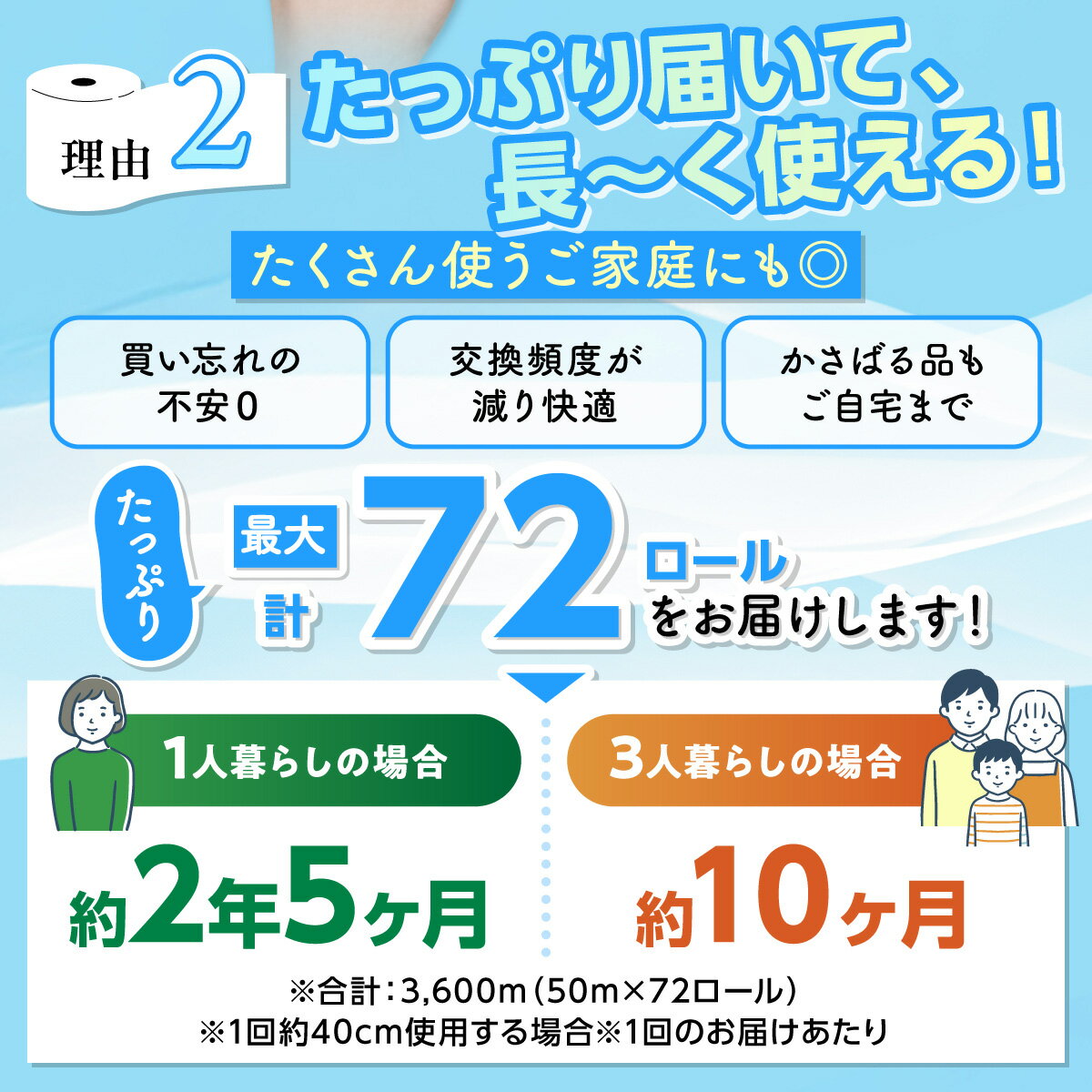 - トイレットペーパー ダブル 2倍(72個/50m)長巻き 再生紙 100% 無香料 倍巻き 日用品 収納 防災 備蓄 SDGs リサイクル