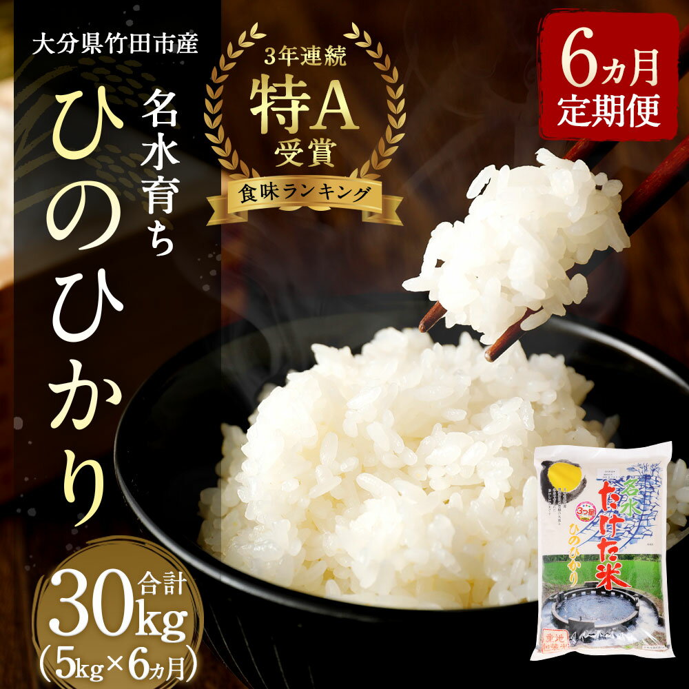 - 【ふるさと納税】【6か月定期便】 竹田市産 名水育ち ひのひかり 5kg×6か月 合計30kg お米 白米 精米 定期便 大分県産 九州産 ヒノヒカリ 大分県 竹田市 送料無料
