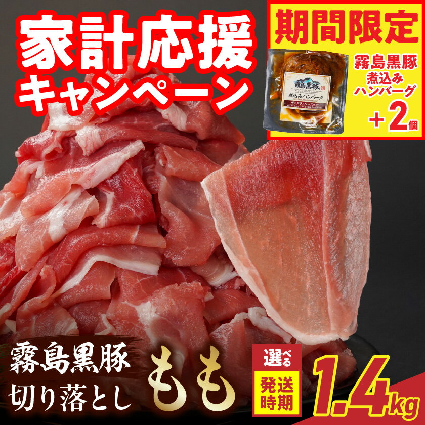 【ふるさと納税】【期間限定☆家計応援】【発送時期が選べる!】霧島黒豚もも切り落とし1.4kg+ハンバーグ - 都城産霧島黒豚 もも切り落とし 200g×7パック 真空 ブランドポーク 小分け 切り落とし 送料無料 12-2803-CP 【宮崎県都城市は2年連続ふるさと納税日本一!】