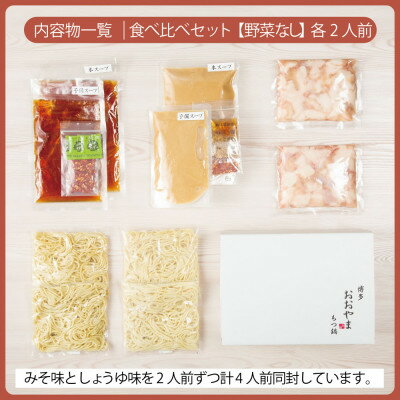 - 【ふるさと納税】【博多もつ鍋おおやま】もつ鍋みそしょうゆ食べ比べ各2人前(合計4人前)(水巻町)【配送不可地域:離島】【1631960】